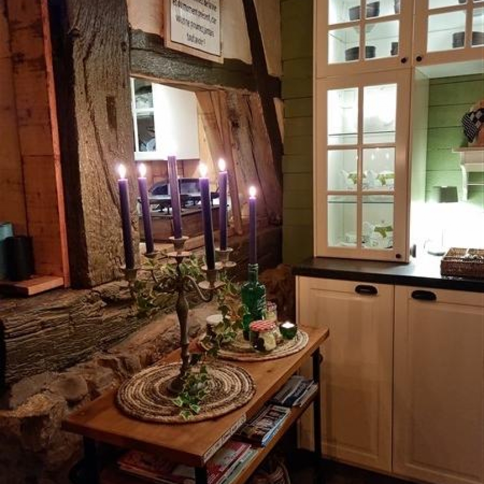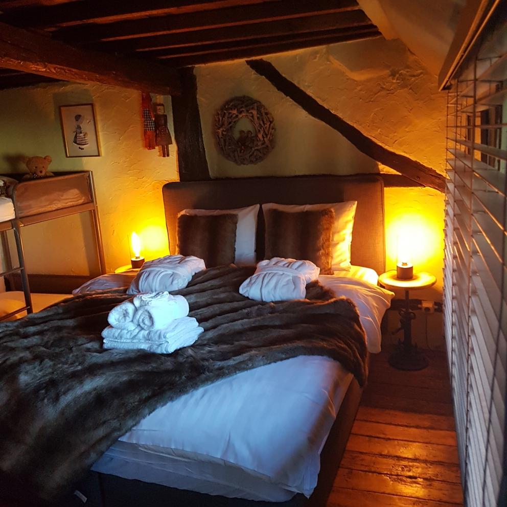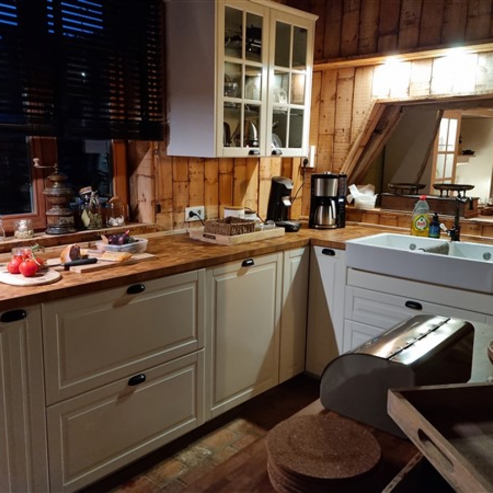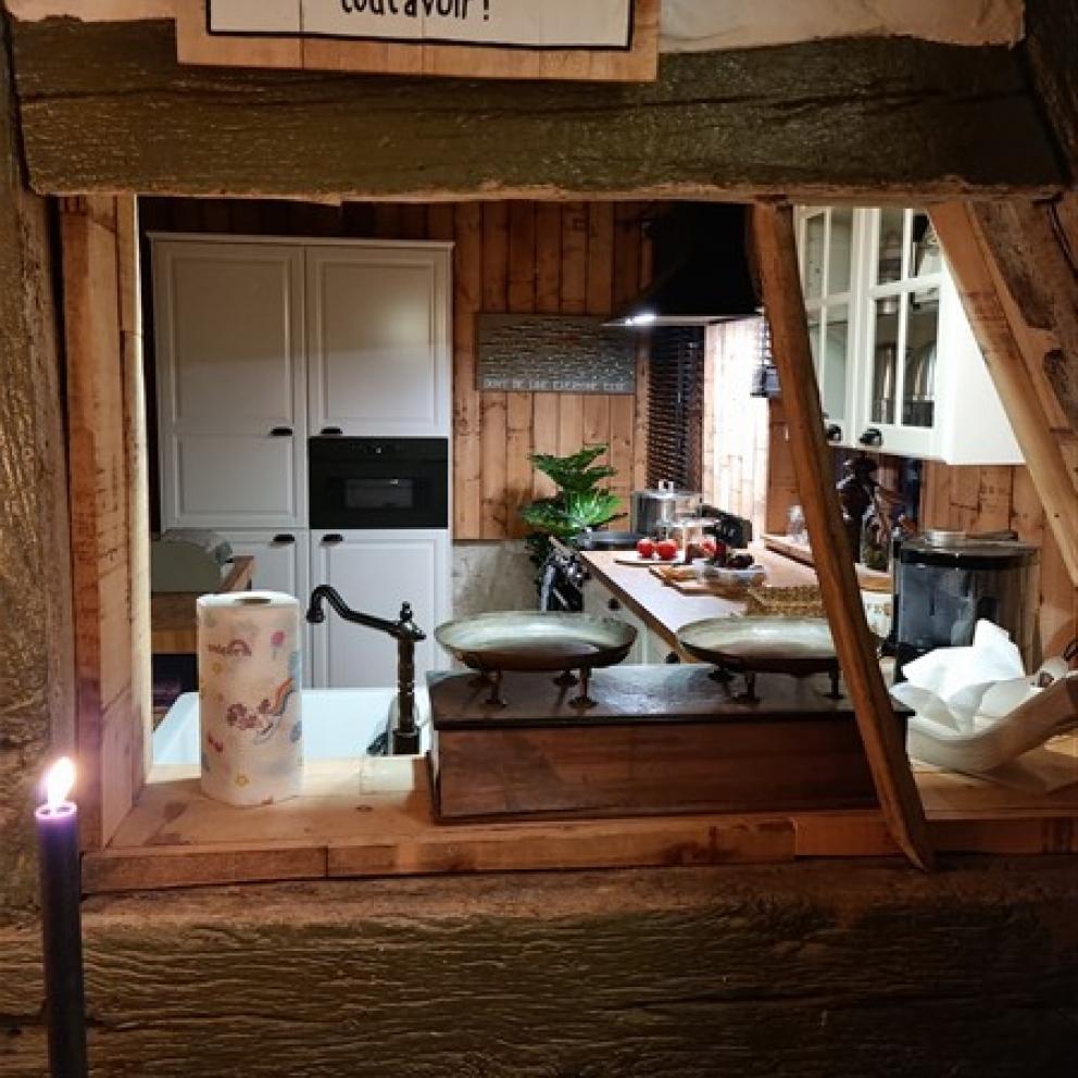 Salon (on the voute) cozy and comfortably furnished, wood stove, bar cabinet with wine glasses and cocktail glasses,… digital TV Proximus, free WiFi, various types of board games in the wicker basket,…