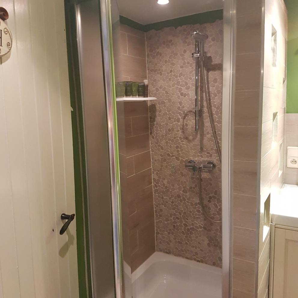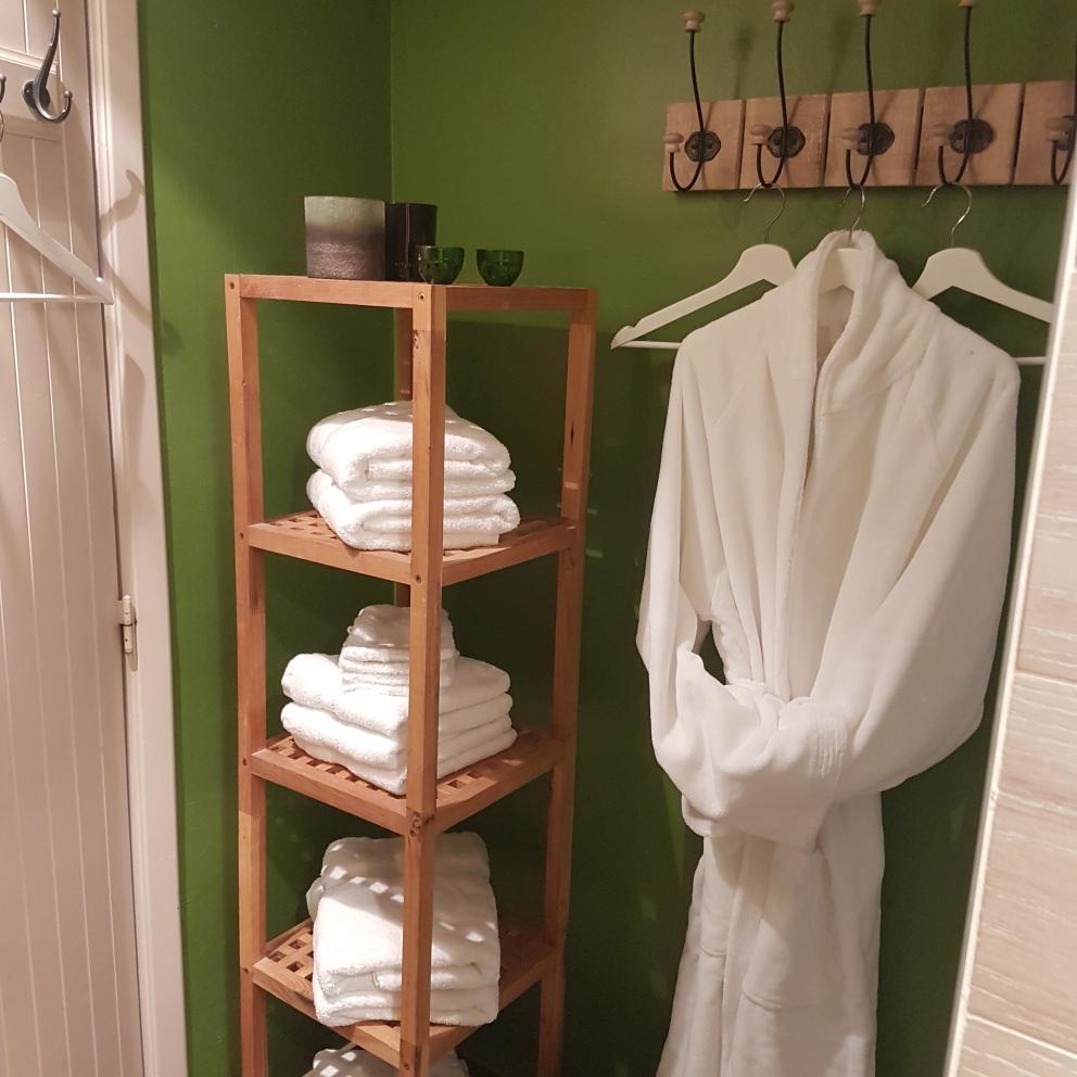 Separate bathroom: with shower, sink, storage cupboard, ...